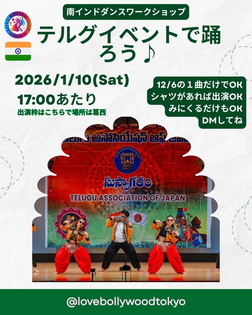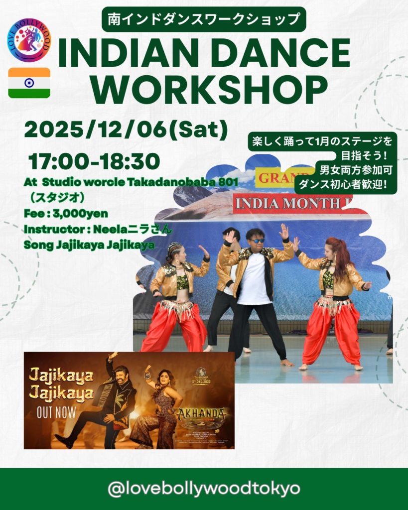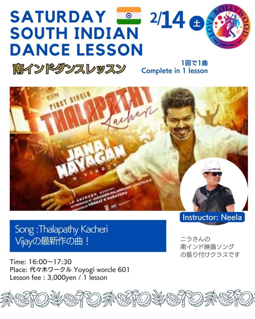 2月はインドの南インド映画産業コリウッドの曲で踊るダンスクラスあります😊